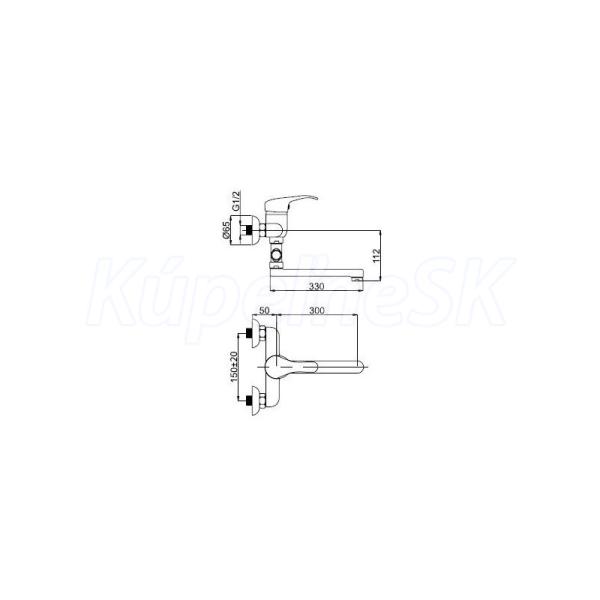 Rubineta YUTA Y-12/C Sprchová a vaňová nástenná batéria 170mm, s príslušenstvom, Chróm