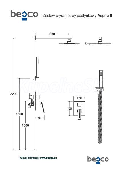 Súčasťou balenia je podomietková batéria ASPIRA I + podomietkový montážny box + ručná sprcha (plast) + sprchová hadica + vývod a držiak ručnej sprchy + hlavová sprcha (SLIM - kov) s držiakom.