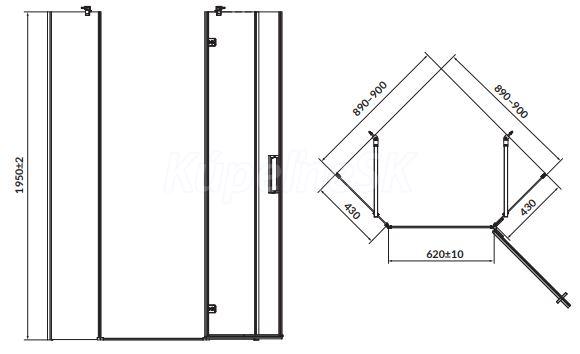 >>  Sprchové kúty a žľaby  >>  Päťuholníkové kúty  >>  Cersanit JOTA Sprchový kút 5-uhoľníkový 90x90x195 cm, Čierna, Číre sklo, Pravý S160-015