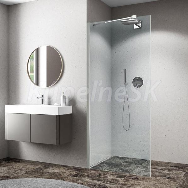 Profily bočnej steny sú vyrobené z hliníka a ponúkame ju v prevedení Brillant s transparentnou výplňou bezpečnostných skiel. Bočné steny sú pomocou flexibilnej vzpery upevnené k múru, čo zaručuje, že váš sprchovací kút bude stabilný. Krásu kúta dopĺňa vysoko dizajnové držadlo.