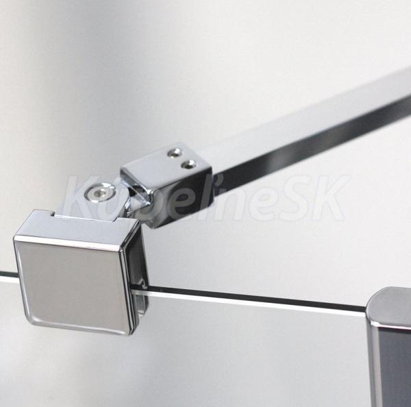 Sprchový kút pôsobí veľmi elegantne. Napomáha tomu veľmi atraktívna flexibilná vzpera, ktorá zaisťuje stabilitu sprchovacieho kúta. Čerešničkou na torte je kvalitné chrómované držadlo zo zliatiny zamak.