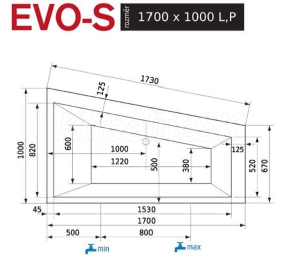 Santech Evo-S asymetrická masážna vaňa 170x100 P Relaxa 200