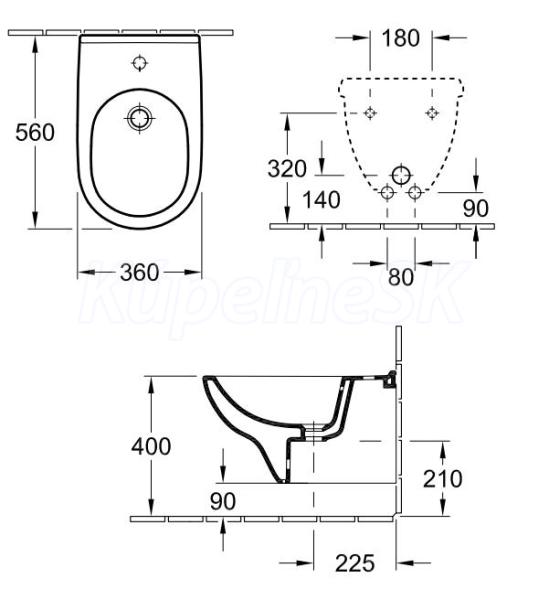 >> WC-Bidety-dosky-Pisoár >> Bidety závesné >> V&B O.NOVO 56x36 bidet závesný s prepadom, Biela 54600001
