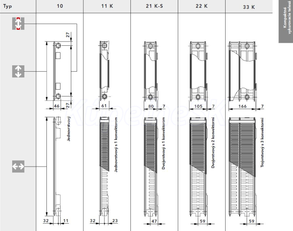 Každý kompaktný panelový radiátor je vybavený na zadnej strane navarenými závesnými chytkami. Radiátory typov 11K, 21K-S, 22K a 33 K majú odnímateľné kryty, ktoré sú zložené z jednej vrchnej perforovanej a dvomi plnými bočnými krytmi z pozinkovaného plechu.