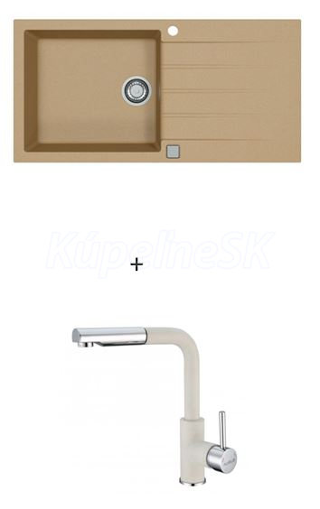 Alveus CADIT 50 SET kuchynský granit. drez so sifón. 100X50 + batéria SIROS Beige