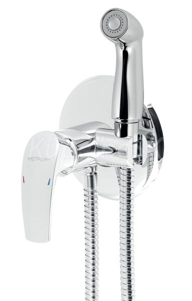 kategória distribúcie Novaservis: Vodovodní baterie | Bidetové baterie. Kvalitná a odolná, keramická kartuš KEROX 35 mm . so 7 ročnou zárukou. Prvotriedne chrómové prevedenie. Podomietková bidetová batéria s držiakom sprchy, kovovou hadicou a sprchovou ružicou so STOP-ventilom. Batéria obsahuje podomietkové pripojenie 1/2" so spätnými klapkami.
