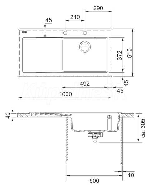 Franke Mythos keram drez Fraceram MTK 611-100/2 Glacier 1000x510+sitkový ventil