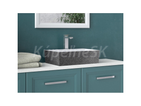 Luxusné a praktické umývadlo na dosku VERA GLAM . Veľmi obľúbené hranaté línie umývadla na dosku pomôžu v novej kúpeľni dotvoriť príjemnú atmosféru. Umývadlo je v štandardnom prevedení bez otvoru pre batériu (bez príplatku je možné vo výrobe dorobiť) a prepadu. Umývadlo je vyrobené z liateho mramoru (Mineral Durabe) av GLAM farebných variantoch (zlatá, strieborná, grafitová) .