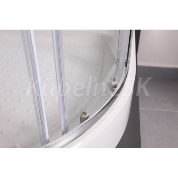 Štvrťkruhový sprchovací kút BILBAO, značky . Skvelý sprchovací kút s vaničkou so sifónom, vyniká stabilnými hliníkovými profilmi nepodliehajúcimi korózii vo farbe chrómu. Dokonalú tesnosť sprchovacieho kúta zaistí bezpečnostné sklo číre (5 mm) a magnetické dovieranie dverí. Tichý posun pomocou ložiskových pojazdov s vysokou životnosťou (spodný vytláčací pre ľahšiu údržbu).