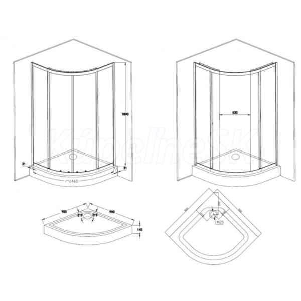 - Rozmer: 90× 90 × 194,5 cm - s vaničkou (šírka, dĺžka, výška), výška zásteny bez vaničky 180 cm