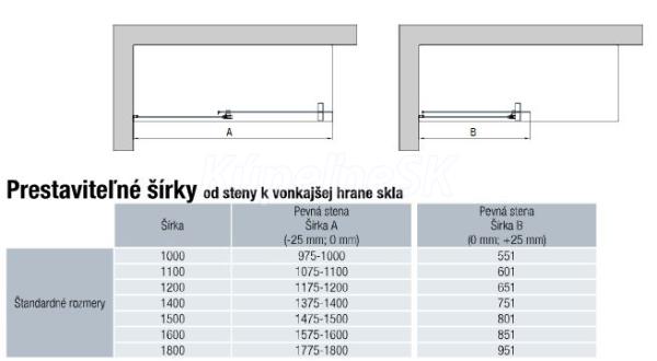 Ronal - Sanswiss CAW2 Cadura Pevná stena samostatná s posuvným dielom