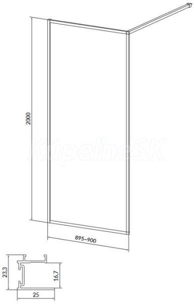 Cersanit LARGA Walk-In sprchový kút k stene 90x200, Chróm, Číre sklo+vzpera S932-135