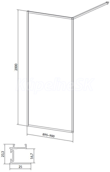 Cersanit LARGA Walk-In sprchový kút k stene 90x200, Čierna, Číre sklo+vzpera S932-138