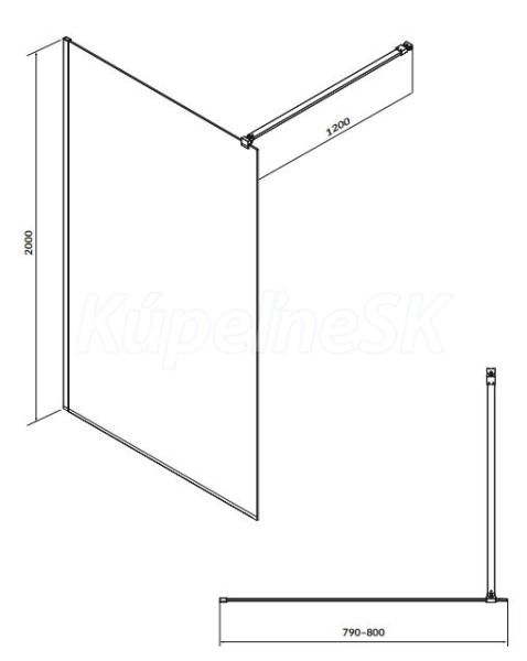 Cersanit MILLE Walk-In sprchový kút k stene 80x200, Chróm, Číre sklo+vzpera, S161-005