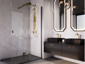 Walk-in sprchovací kút VAYO BLACK s pevným a posuvným sklom , ktorý je zaistený rozpernou tyčou s maximálnou dĺžkou 120 cm . V spojení s modernými odtokovými kanálikmi vznikne úplne bezbariérový priestor na sprchovanie. Zásteny sú vyrobené z bezpečnostného skla s hrúbkou 8 mm.