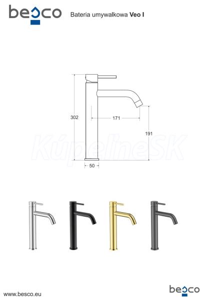 Vysoká stojanková umývadlová batéria VEO I grafitová farba predstavuje moderný dizajn v elegantnom oválnom prevedení. Batéria je osadená veľmi kvalitnou keramickou kartušou a značkovým perlátorom, ktorý zaisťuje šetrnosť k spotrebe vody. Povrchová úprava špeciálne upravená proti usadzovaniu nečistôt a jednoduchú údržbu. Dodávame v šiestich farbách a to lesklý chróm , čierna, zlatá, zlatá brúsená, grafitová a zlatá lesklá.
