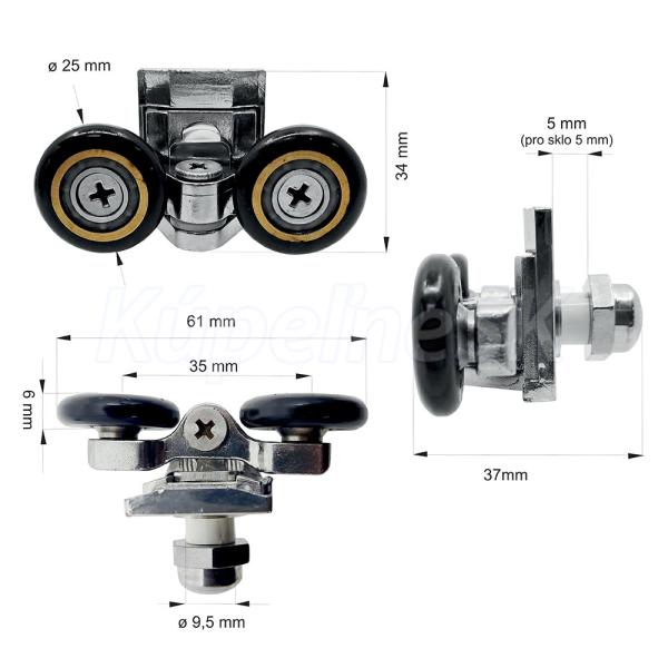>> Sprchové kúty a žľaby >> Doplnky ku sprchovým kútom >> Mereo Sady pojazdov – horné, pojazdy pevné pre Kora CK351xxN, CK341xxN, súprava 4 ks