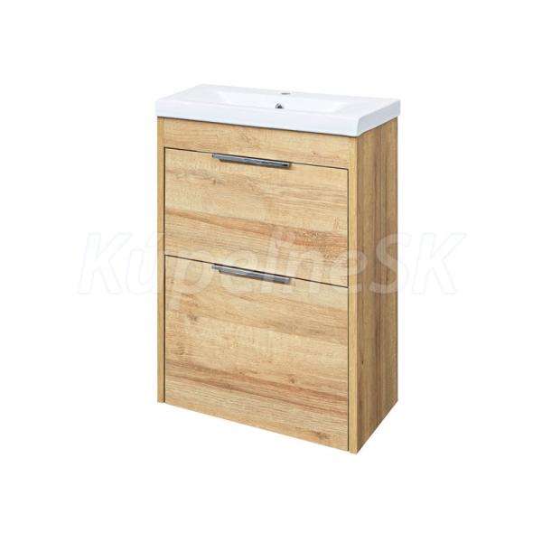 Mereo Vigo, kúpeľňová skrinka s keramickým umývadlom 51 cm, dub Riviera