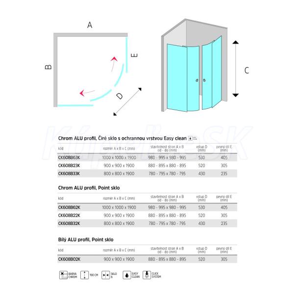 Výrobky v čírom prevedení skla sú vybavené povrchom EASY CLEAN. Jedná sa o ochrannú vrstvu, vďaka ktorej na skle nedochádza k usadzovaniu nečistôt a umožńuje jednoduchú údržbu. Vrstva je odolná voči čistiacim prípravkom bežne používaným na okná a sklenené výplne. Sklenenú výplň sprchovacieho kútu doporučujeme ošetriť najmenej 4x do roka prípravkom MSO Anticalc Conditioner.
