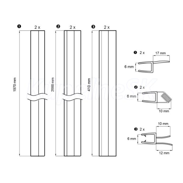Súprava tesnení - pre CK70101Z, (tesnenie medzi dvere a fixné sklo 2 ks, mag. lišty 45° 2 ks, spodná stieracia lišta 2 ks)