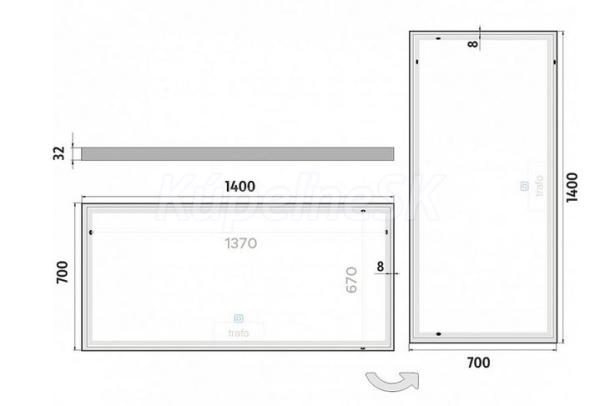 Výkonné LED diódy po celom obvode zrkadla zakryté 8 mm rámčekom. Konštrukcia z hliníkového rámu 32x19mm, sklo zrkadla o hrúbke 5 mm. Pripojenie 220-240 V. Zapínanie/vypínanie/ovládanie dotykovým senzorom. Možnosť nastavenia farebnej teploty svietenia. Životnosť LED diód je až 50 000 hodín. Ochrana IP 44. Súčasťou zrkacla je káblová spojka IP 44.