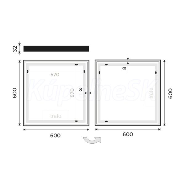 Zrcadlo do koupelny 60x60 čtvercové s osvětlením, černý rám je skvělým doplňkem do koupelny. Zrcadla do koupelny NIMCO vynikají kvalitním zpracováním a moderním designem. Osvětlení zajišťují výkonné LED diody po celém obvodu zrcadla zakryté 8 mm rámečkem. Konstrukce je z hliníkového rámu 32x19 mm, sklo zrcadla o tloušťce 5 mm je zapuštěné v černém rámu. Připojení 220-240 V. Ochrana IP 44. Bez vypínače. Zapojení do el. rozvodu a zapínání přes vypínač světel v místnosti. Barevná teplota denní bílá. Životnost LED diod je až 50 000 hodin. Součástí zrcadla je kabelová spojka, IP 44.