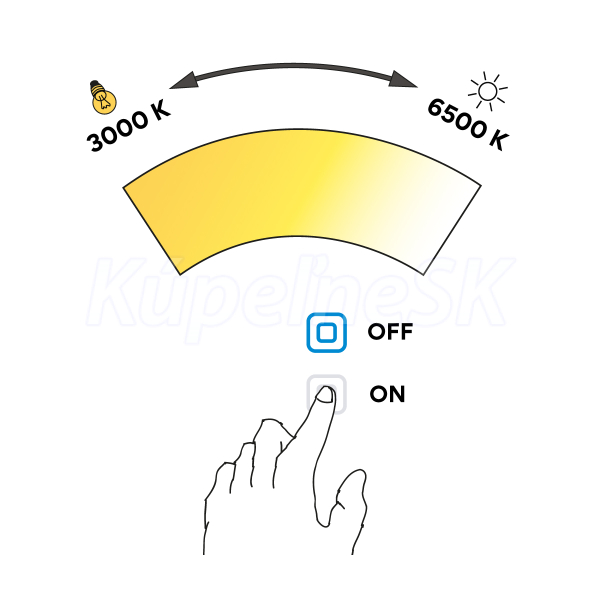 Koupelnové podsvícené LED zrcadlo. Příkon 27 W. Možnost nastavení barevné teploty od 3000 - 6500 K. 1944 Lumen.