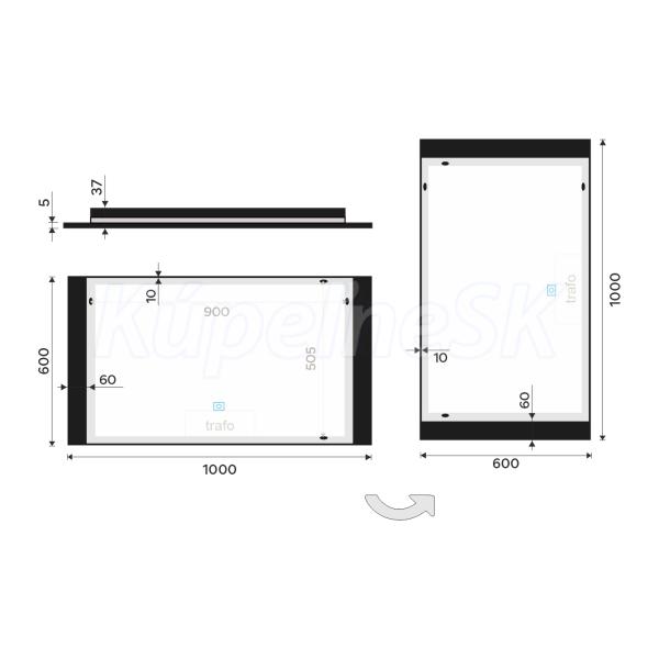 Černé zrcadlo do koupelny 100x60 s osvětlením, černým rámem, dotykový senzor je skvělým doplňkem do koupelny. Zrcadla do koupelny NIMCO vynikají kvalitním zpracováním a moderním designem. Zrcadlo o tloušťce 5 mm je zapuštěné do masivního černého matného rámu. Rám zrcadla je z hliníku. LED pásky jsou zabudované v liště z akrylového skla. Akrylové sklo lépe rozptyluje světlo a chrání Led diody před vlhkostí. Lišta je umístěna za rámem zrcadla. Světlo vychází do prostoru za zrcadlem a vytváří tak zajímavé ambientní svícení. Zapínání / vypínání / ovládání je pomocí dotykového senzoru s pamětí. Možnost nastavení barevné teploty svícení od studené bílé až po teplou bílou. Životnost LED diod je až 50 000 hodin. Ochrana IP 44. Připojení 220-240 V. Součástí zrcadla je kabelová spojka, IP 44.