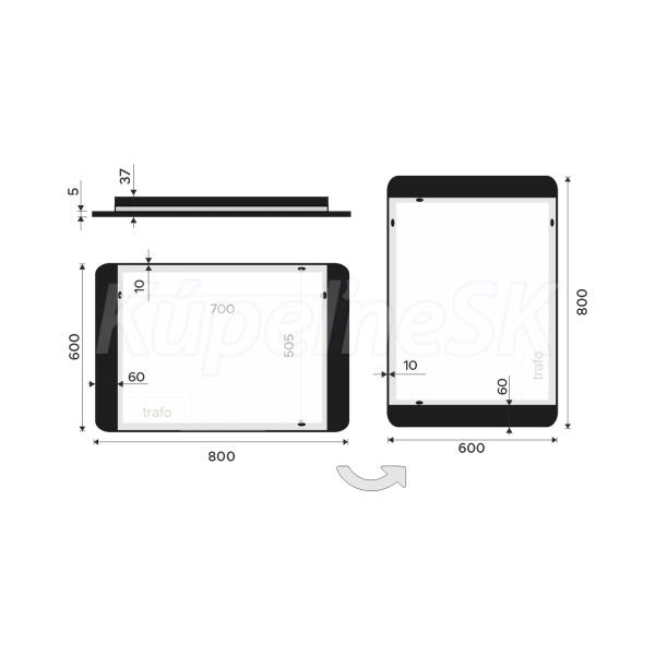Černé zrcadlo do koupelny 80x60 s osvětlením a černým rámem je skvělým doplňkem do koupelny. Zrcadla do koupelny NIMCO vynikají kvalitním zpracováním a moderním designem. Zrcadlo o tloušťce 5 mm je zapuštěné do masivního černého matného rámu. Rám zrcadla je z hliníku. LED pásky jsou zabudované v liště z akrylového skla. Akrylové sklo lépe rozptyluje světlo a chrání Led diody před vlhkostí. Lišta je umístěna za rámem zrcadla. Světlo vychází do prostoru za zrcadlem a vytváří tak zajímavé ambientní svícení. Zrcadlo lze uchytit horizontálně a vertikálně. Připojení 220-240 V. Ochrana IP 44. Zrcadlo je bez vypínače. Zapojení zrcadla je do el. rozvodu a jeho zapínání je přes vypínač světel v místnosti. Barevná teplota je denní bílá – jasné polední světlo. Led čipy mají vysoký výkon, jejich životnost je až 50 000 hodin. Součástí zrcadla je kabelová spojka, IP 44.