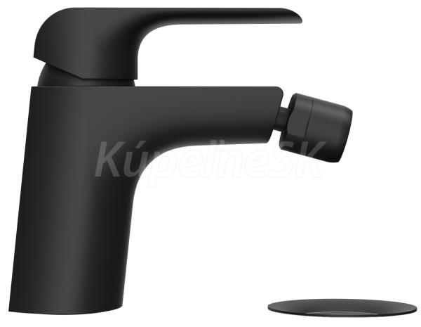 Bidetová batéria Flat, s odtokovou súpravou ClickClack. V čiernom matnom vyhotovení.