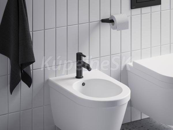 Bidetová batéria Puri s odtokovou súpravou ClickClack. V čiernom matnom vyhotovení.