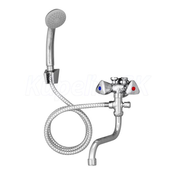 Kohútiková batéria s krátkym chodom ovládacej hlavice pre nízkotl. prietokové ohrievače, ramienko O18mm - 30cm, prepínač, vr. sprch. setu.