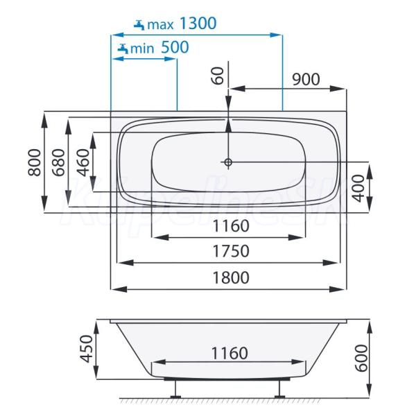 Santech BEVEL obdĺžniková masážna vaňa 180x80 cm,body 300+ZADARMO automat. ohrievanie vody