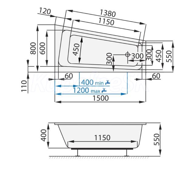 Santech VIKY asym.masážna vaňa 150x80cm,fitnes 200+aut.dohrev vody+aut.preplach Clean,Prav