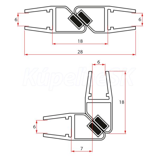 >> Sprchové kúty a žľaby >> Tesnenie pre sprchový kút - Aquatek >> Gelco SIGMA SIMPLY Set magnetických tesnení 45 ° pre sklo 6/6mm, 1900mm NDGS09