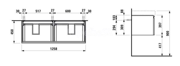 >>  Kúpeľňový nábytok  >>  LAUFEN kúpeľňový nábytok  >>  Laufen PRO S skrinka pod umývadlo s 2 zásuvkami 126x45x39 cm,Biela Lesklá