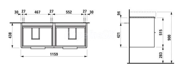 Laufen BASE skrinka pod dvojumývadlo 115,9x53,1x43,8 cm,4 zásuvky,Biela Matná