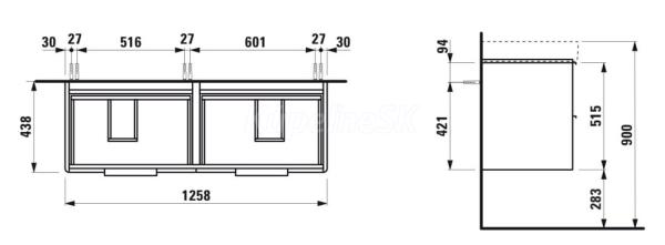 Laufen BASE skrinka pod dvojumývadlo 125,8x53,1x43,8 cm,4 zásuvky,Biela Matná