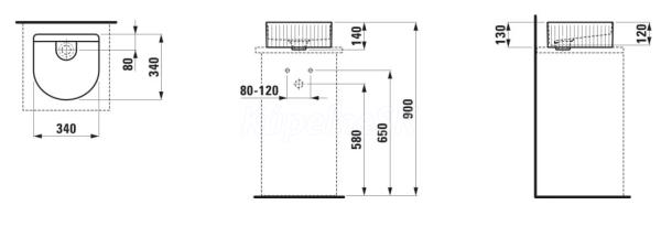 Laufen SONAR umývadlo na dosku 34x34x14 cm,bez prepadu,bez otv pre bat,štrukt.povrch,Biela