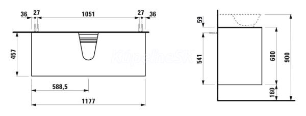 >>  Kúpeľňový nábytok  >>  LAUFEN kúpeľňový nábytok  >>  Laufen New Classic skrinka pod umývadlo 118x45x60 cm,2 zásuvky,výrez uprostred,Biela Matná