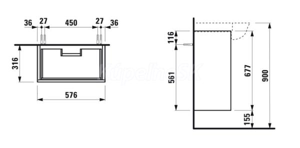 Laufen New Classic skrinka pod umývadlo 58x32x67 cm,2 zásuvky,Biela Matná