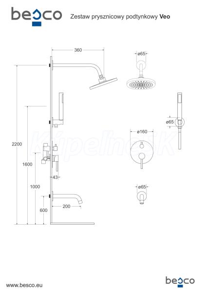 Súčasťou balenia je podomietková batéria VEO chróm je podomietkový montážny box + ručná sprcha + sprchová hadica + vývod a držiak ručnej sprchy + držiak a hlavová sprcha + stenový vývod.