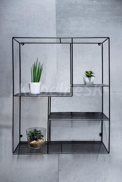 Nástenná hranatá drôtená polička vyrobená z kvalitnej ocele a lakovaná do čiernej farby . Obdĺžniková polička obsahuje celkom 3 rovné, odkladacie plochy . Na inštaláciu je nutnosťou vŕtanie do stien.