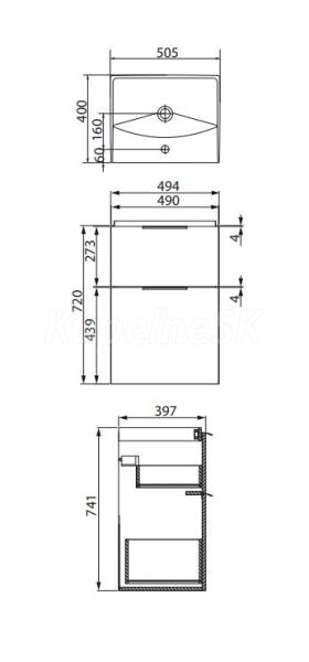 Súprava obsahuje závesnú skrinku CITY 50 s umývadlom CITY 50. Čelo a korpus skrinky sú vyrobené z drevotrieskovej dosky v bielej farbe. Skrinka je vybavená systémom tichého zatvárania (tzv. SOFT CLOSE) a dvoma priestrannými zásuvkami. Pohodlnú úchytku v dvoch farbách (čierna matná S854-033 a strieborná matná S854-034) je možné dokúpiť samostatne.