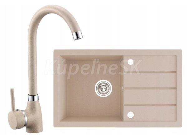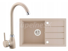 Laveo ROCK 130 kuchynský granitový drez so sifónom 78x48 Piesková a batéria 1090942piesk