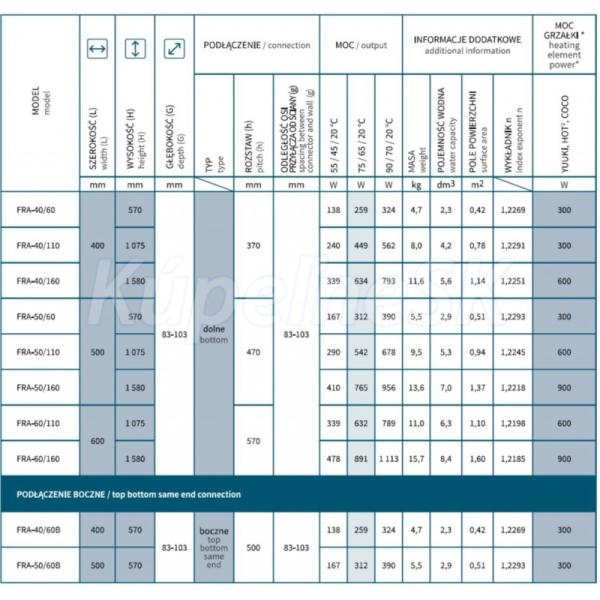 - 400 × 570 mm, výkon 259 W (vykurovacia tyč 300 W) - BOČNÉ PRIPOJENIE