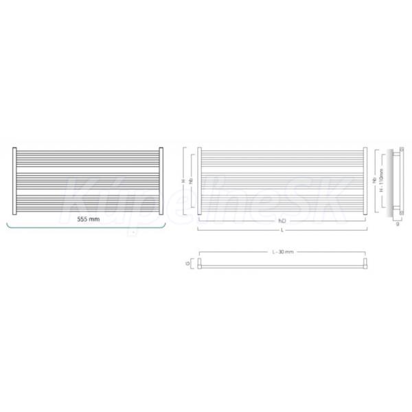 - 1000 × 555 mm, výkon 554 W, vykurovacia tyč 600 W - pripojenie klasické (na rozstup) / stredové 50 mm