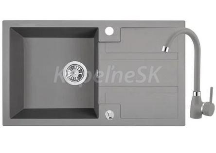 Laveo Set BARBADOS 76 kuchynský granitový drez 76x44 cm + batéria Granit 8 Šedá