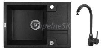 Laveo Set BARBADOS 65 kuchynský granitový drez 65x44 cm + batéria Granit 8 Čierna