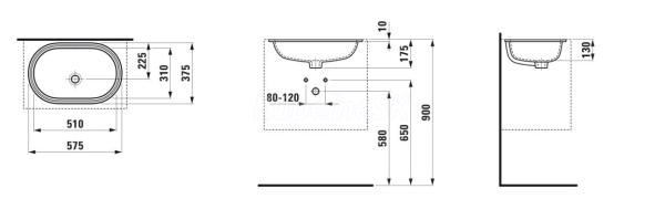 Laufen SAVOY oválne vstavané umývadlo 51x31 cm,bez otv pre batériu,glazovaný povrch,Biela